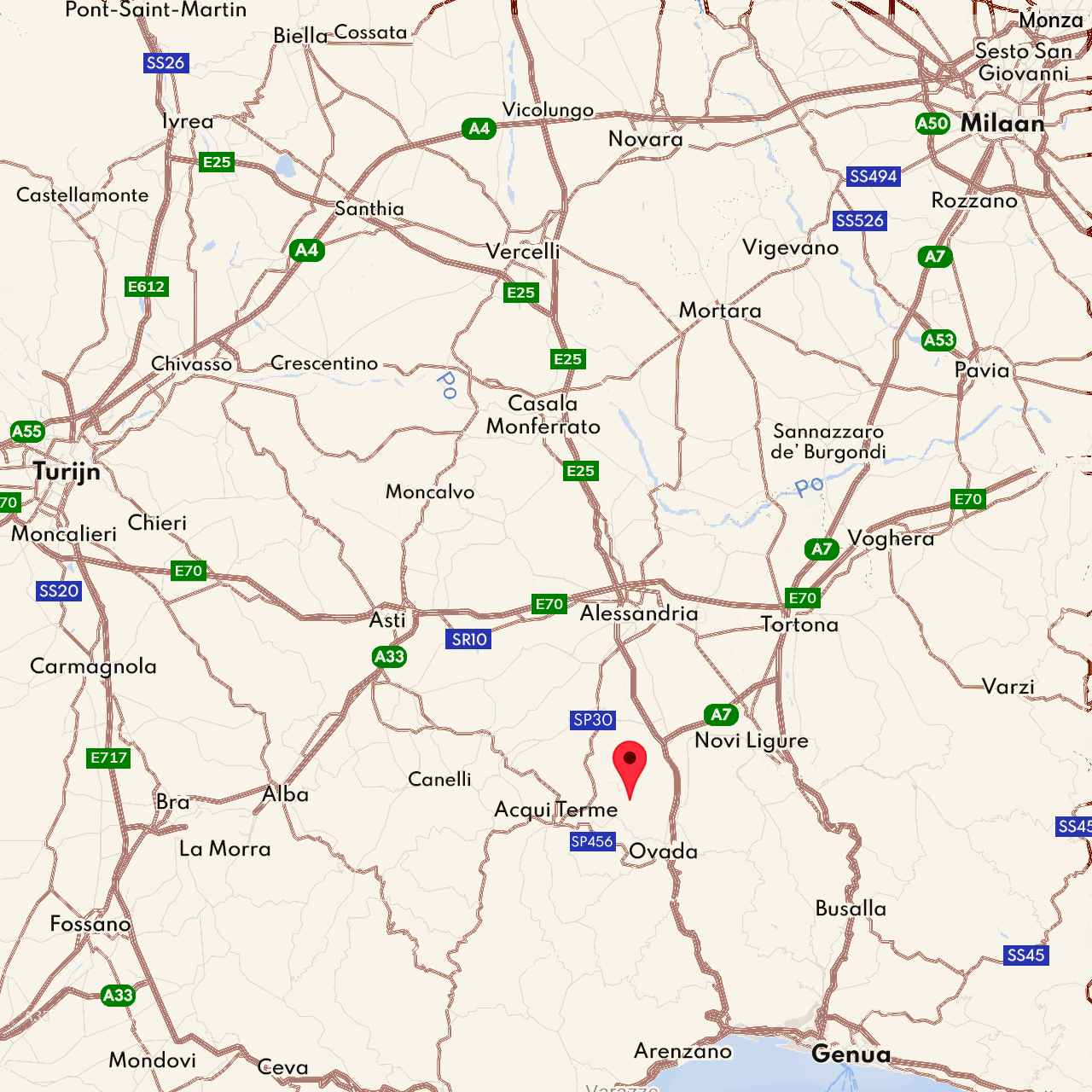 Piemonte, een provincie in het noorden van Italië, op anderhalf uur rijden van Milaan, Turijn en een uurtje van de kust (Savona/Genua), de bergen en te midden van Barolo, Barbaresco, en Barbera.
